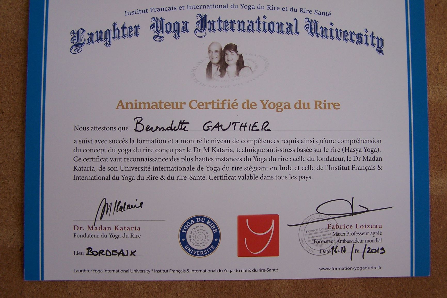 J'ai eu la chance de suivre la formation à Bordeaux en novembre 2019, orchestrée par Fabrice Loizeau, Directeur de l'Institut Français du Yoga du Rire et Rire-Santé, Master Professeur Formateur International & Ambassadeur mondial de Yoga du Rire, Professeur officiel du Docteur Kataria, ce dernier étant le créateur du Yoga du Rire en mars 1995.